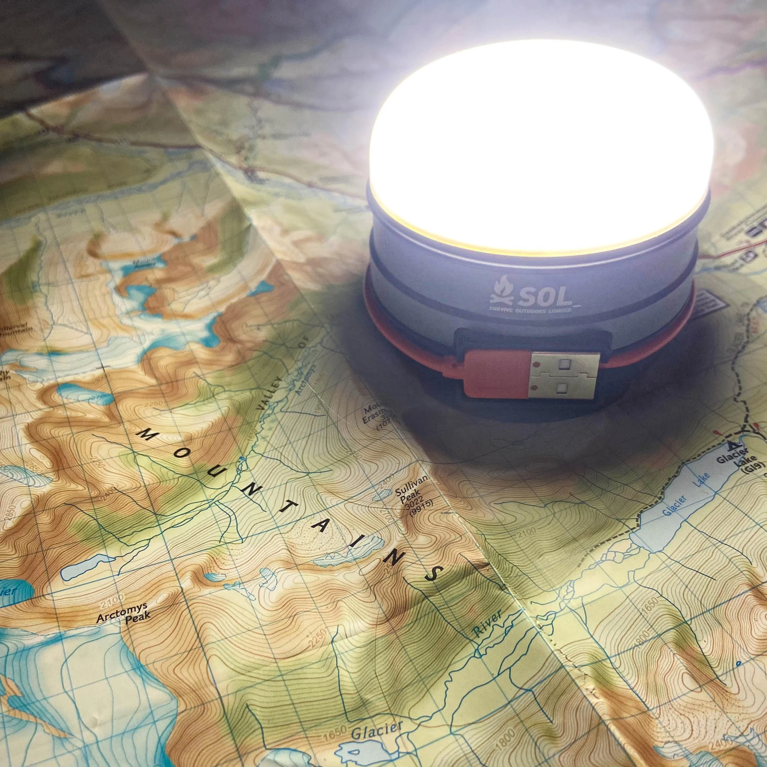 After a long day of adventuring, I like to return to my campsite to cook, journal, read and plan for the next day's adventures. I spend most nights studying my National Geographic maps and reading my guide books. I'm old school, but with minimal service, you need them. You need a great light to do so, and I love my SOL Venture Light. Not only is it lightweight, but I can hang it from the ceiling of my tent, weigh down my maps and charge my phone with its power bank.